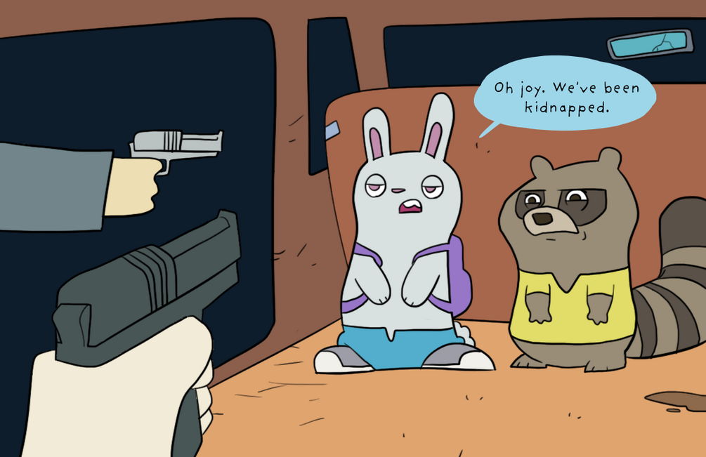 "Fuzzy is the Night" is a webcomic with 12 possible endings, 4 branching storylines, and over 150 full-color illustrated panels.